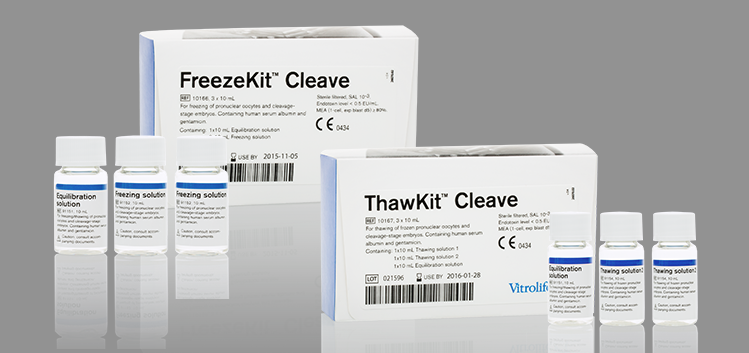 With the new media - FreezeKit Cleave™ and ThawKit Cleave™ Vitrolife - the survival rate increased from 82.1 to 94.4 % and the complete embryo survival rate increased from 54.9 to 81.3 %. The implantation rate, clinical pregnancy rate per embryo transfer, and per cycle were 28.2, 45.2, and 43.7 %, respectively, using the old formulations of cryo solutions. With the new solutions, the results reached 33.7, 54.1, and 54.1 %, respectively - the differences being statistically significant. The new solutions were specially formulated to add new base medium composition, a modification of a G-Series culture medium containing amino acids for support of embryo viability and with the addition of MOPS buffer for physiological pH maintenance plus hyaluronan, which has been shown to increase embryo survival after cryopreservation.