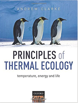 One of the advantages of the Society is that it allows researchers from different countries, angles and disciplines to meet and discuss temperature in the widest sense. One such is Andrew Clarke, Emeritus Fellow of The British Antarctic Survey and who has recently written a book on the Principles of Thermal Ecology. Temperature affects everything and as air or water warm or cool, they change in density, viscosity, solubility of gases and solids, ionisation etc. All of these changes affect organisms, and this often complex mixture of direct and indirect effects means that temperature exerts a powerful influence over what organisms can and cannot do. The book provides looks at three themes - broadly the physics of temperature, temperature and physiology, and temperature and ecology describing the implications of climate change for the earth's biota.
